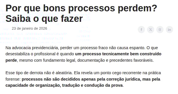 O Direito Previdenciário é amplo, dinâmico e tecnicamente exigente. Por isso, sempre haverá alguém que domina melhor os cálculos, escreve peças mais longas ou mais técnicas, tem mais facilidade com audiência e acompanha jurisprudência em tempo real.